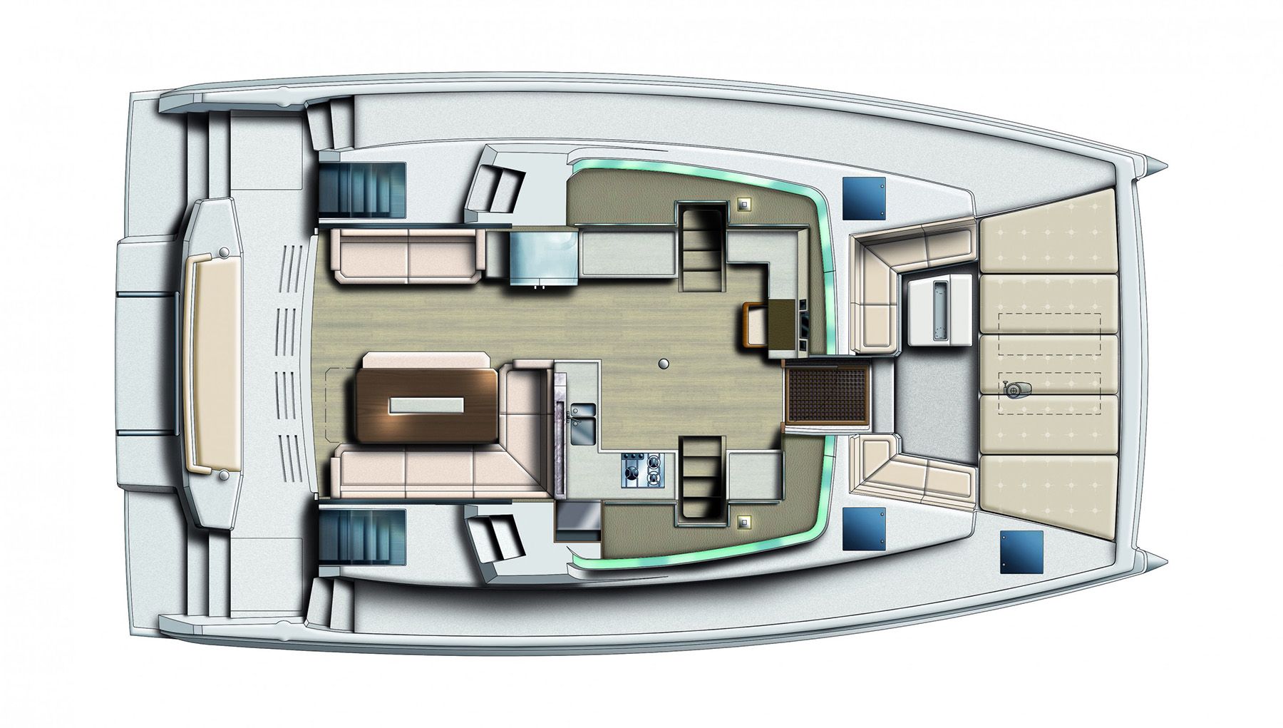 This new model of Bali 4.8 catamaran has been designed for a wide range of tastes.Its outdoor spaces are totally spacious, safe and ventilated. Fully extensible and equipped with an electrodynamic gate for greater safety. |